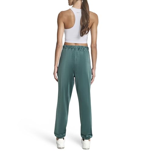 This DKNY Women's Sweatpant is a High Rise Relaxed Cuff Rhinestone Logo Novelty Velour Sweatpant