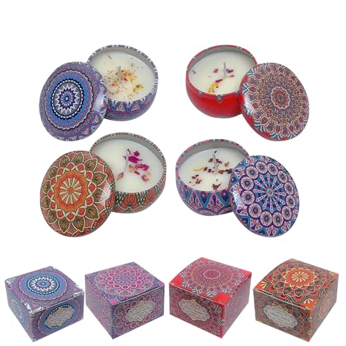 - [LONG LASTING TIME]: This candles ensures a longer burning time compared to traditional paraffin wax candles. Each tin jar candle contains 2.2 ounces of soy wax, 4 mini scented candles will burn for more than 60 hours, so that you will enjoy a number of long-lasting pleasant aromas.