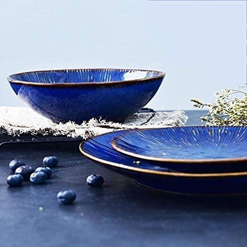 OGMOYT Pasta Bowls Ceramic Bowl - Indigo 19cm Salad Serving Bowl Artisan Tableware Cereal Bowls Size: 19x6.5cm Salad Bowls,