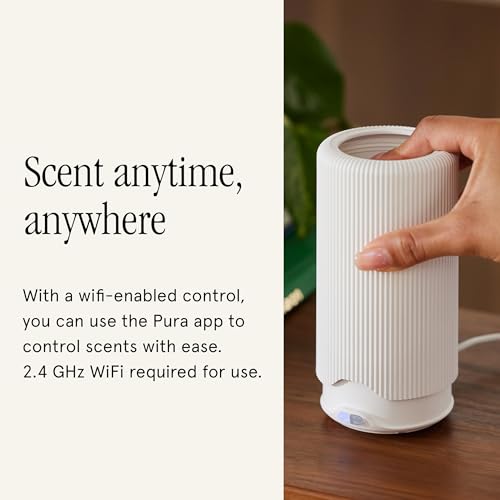 - App-Controlled Convenience: This wifi-enabled, phone enabled diffuser allows you to automate your home scent with custom schedules, timers, and an away mode via the Pura app; 2.4 GHz WiFi is required for use