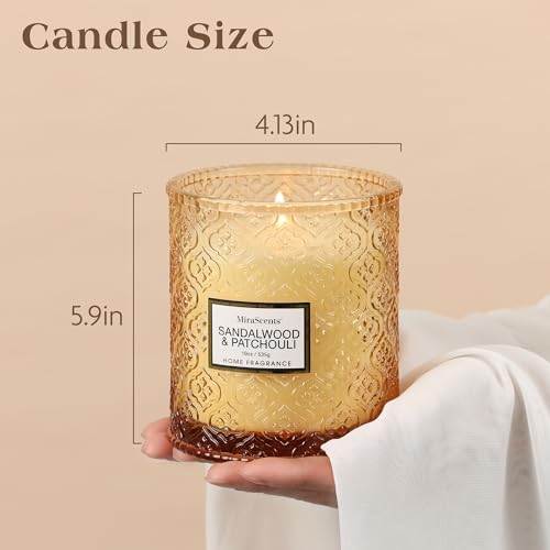 Sandalwood & Patchouli Scented Candles, 19oz Luxury Gifts for Women, Christmas Winter Decorative Glass Candles, Natural So...