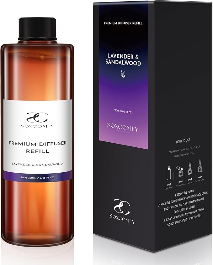 - Luxurious Scent Experience -- Big bottle, with a generous 8.45 fl.oz (250 ml) volume, our aromatherapy scent diffuser oil offers an abundant and enduring scent experience, Uplift your surroundings into a serene escape with LAVENDER & SANDALWOOD Diffuser Oil. Blended with Sweet orange, lavender and sandalwood, this sophisticated scented oil turns any room into a peaceful retreat.