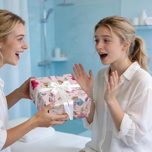 Perfect Size: Each roll measures 17 inch wide x 16.5 feet long. Providing you with a total of 23.25 square feet of paper, perfect for any Small or Medium sized gift. Elegant Spa Design: Features a refined organic spa theme with cosmetic bottles, essential oils, bath salts, flowers, shells, towels, and natural beauty tools. The soft pink and delicate pattern creates a calming, luxurious look that elevates gift presentation and conveys a sense of self-care and thoughtful elegance. Premium Quality: Created with high-quality paper materials, thick and not easily tear or rip. Item came with shrink film to prevent wrapping paper from scratches and reduce dust. Use All Occasion: Perfect for birthday, valentine’s day, mother’s day, spa days, bridal shower, bachelorette party, girls’ nights, and other special occasions gifts wrap. It can also be used for DIY craft projects and other artistic inspirations. Quality Customer Service: Any question about products or orders, please feel free to contact the customer service, we will try our best to solve the problem.